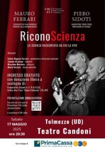 Sabato 17 maggio alle ore 21 il Teatro Candoni di Tolmezzo ospiterà “RiconoScienza”, un originale spettacolo che intreccia scienza, musica e narrazione in un’esperienza coinvolgente e accessibile a tutti. Protagonisti saranno Mauro Ferrari, scienziato di fama internazionale e pioniere della nanomedicina, e Piero Sidoti, raffinato cantautore, biologo e insegnante, vincitore della Targa Tenco.