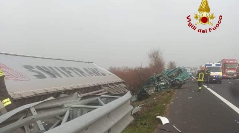 Scontro tra furgoncino e camion, un morto e tre feriti in A4