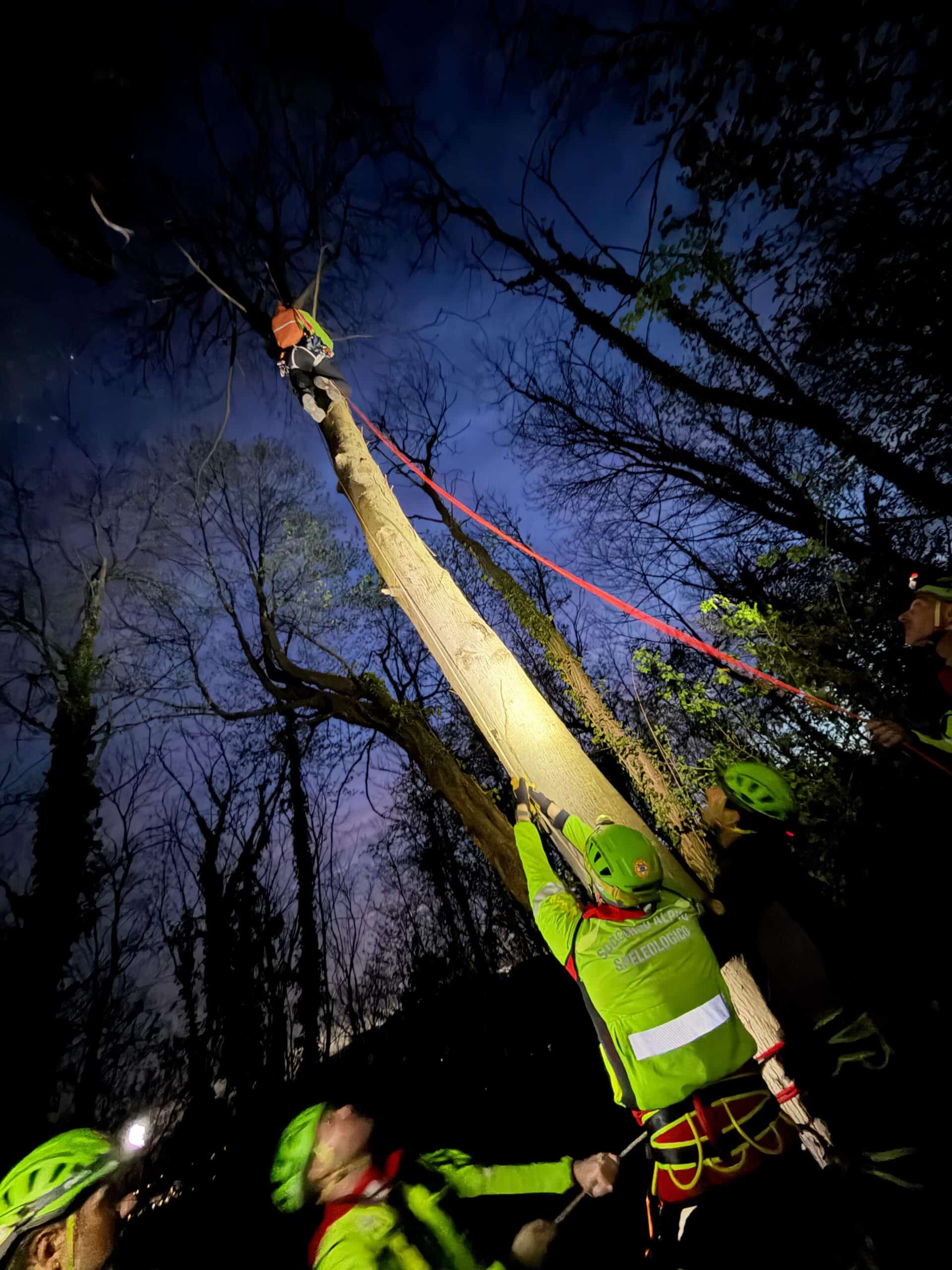 Dodici soccorritori della stazione di Maniago del soccorso alpino si sono portati da lui e con tecniche di tree climbing e impiego di corde e altre attrezzature, hanno raggiunto e assicurato il pilota per poi calarlo al suolo, fortunatamente incolume.