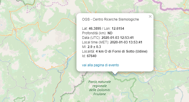 La rete sismometrica del Friuli Venezia Giulia ha registrato alle ore 13.53 un terremoto di magnitudo 3.0±0.3 localizzato 4 km a Ovest di Forni di Sotto e profondità di circa 7.5 km.