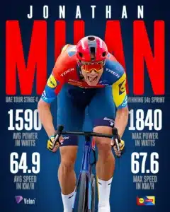 Seconda volata all’UAE Tour e seconda vittoria per Jonathan Milan. Il bujese si è imposto nella quarta tappa, la Fujairah Qidfa Beach-Umm al Quwain di 181 km, precedendo di un soffio Merlier e PhiIlpsen al termine di uno sprint molto serrato.