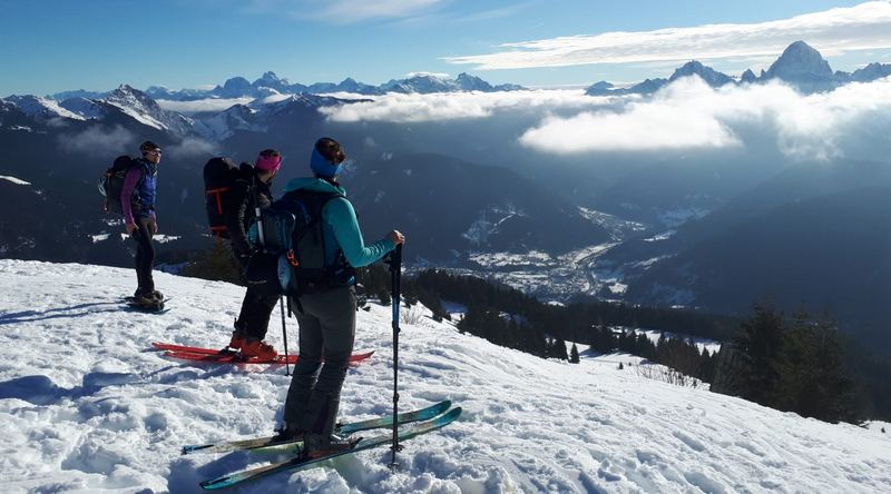 Tutti hanno affrontato un percorso di scialpinismo e hanno visto e provato sul posto simulazioni di ricerca con ARTVA/pala/sonda in valanga e manovre di recupero con ancoraggio sulla neve.
