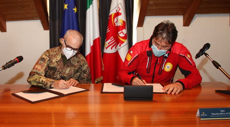 Il Corpo Nazionale Soccorso Alpino e Speleologico ed il Comando Truppe alpine dell’Esercito italiano hanno firmato ieri un importante accordo tecnico, per istituzionalizzare ed incrementare la stretta collaborazione operativa e addestrativa nell’ambito del soccorso alpino sul territorio nazionale. Il documento è stato siglato a Bolzano dal presidente del Soccorso Alpino e Speleologico, Maurizio Dellantonio, e dal Comandante delle Truppe Alpine, Gen. C.A. Claudio Berto.