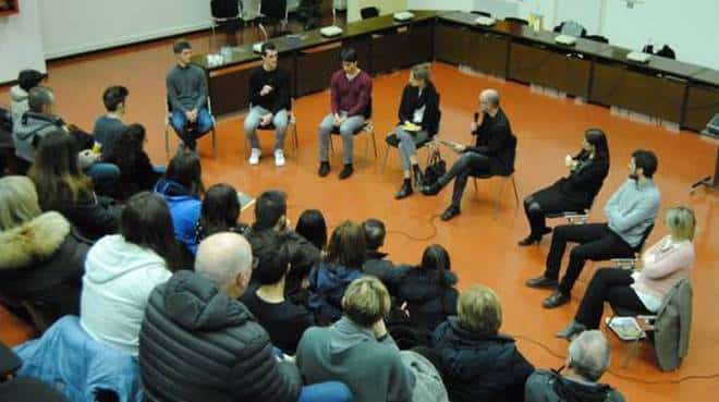 Martina Cescutti, responsabile dell’Ufficio Turistico di Forgaria, ha trasmesso la sua passione per una terra, il Friuli, talmente ricca da risultare sempre più attrattiva per turisti dell’Est e del Nord Europa; Andrea Cucchiaro, chimico, ha dato prova della determinazione necessaria ad intraprendere nuove sfide professionali come quella di iniziare ad esercitare la propria professione all’estero, apprendendo, da adulto, una nuova lingua; Anna Di Toma ha sottolineato come la dimensione di servizio maturata nel volontariato possa esplicarsi anche nell’impegno civico, in un’amministrazione comunale chiamata a fronteggiare quotidianamente i problemi della comunità; Laura Ganzitti, ginecologa, ha raccontato, da un lato, come spesso le occasioni “non cercate” permettano di scoprire qual è la propria strada e, dall’altro, come la fatica di undici anni di studio universitario venga ripagata ogni giorno dalla gioia di veder nascere nuove vite e nuove famiglie; Pietro Iogna Prat, fisioterapista impegnato sia nel lavoro riabilitativo a livello locale, sia nella formazione di professionisti a livello internazionale, ha evidenziato il potere di una relazione “di cura” esercitata attraverso le mani e il contatto corporeo e ha sottolineato come si possa apprendere molto all’estero con l’obiettivo di portare sul proprio territorio la professionalità appresa; Andrea e Luca Pontelli, imprenditori, hanno raccontato come una passione – quella delle api, coltivata sin dall’infanzia – possa tradursi in un’idea di impresa e dar vita a un’azienda, affrontando con tenacia ostacoli burocratici e amministrativi; Maria Zuliani, calciatrice di Serie A presente alla serata mediante un contributo video, ha fatto emergere le disparità esistenti nel mondo del calcio: diversamente dai colleghi maschi, per sostenersi economicamente una calciatrice deve abbinare al lavoro in ambito sportivo un’altra professione.