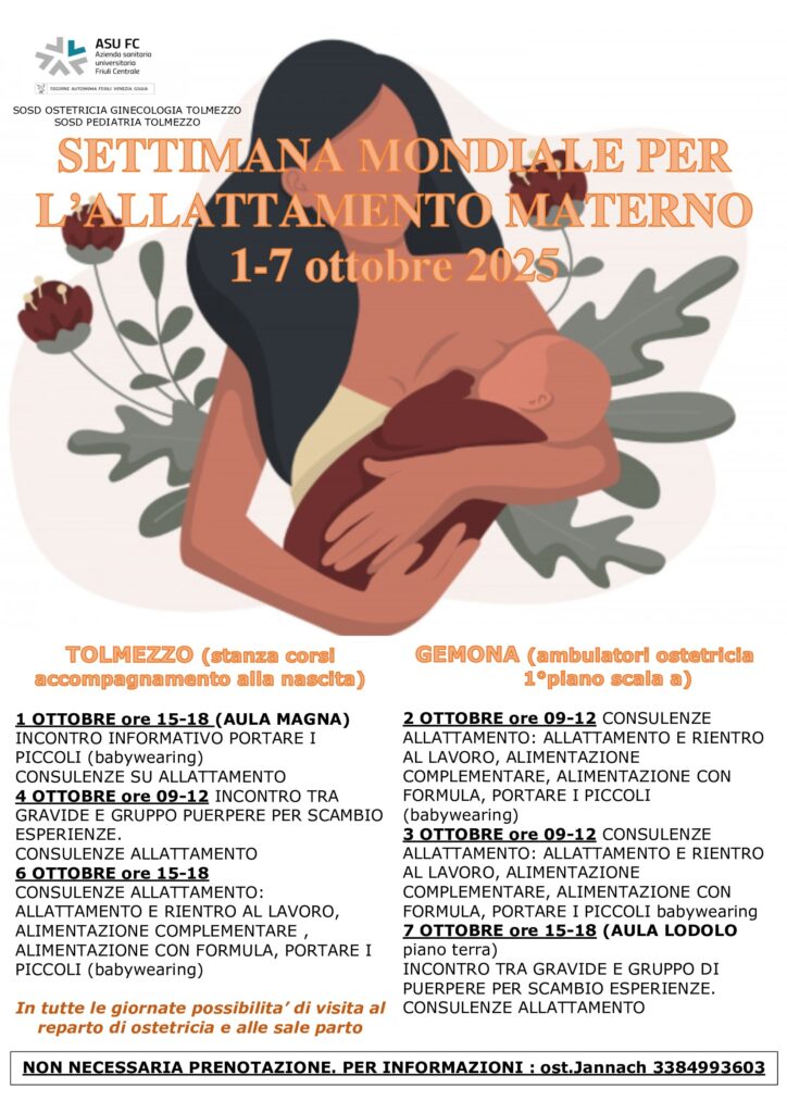 Per l’occasione, da 1° al 7 ottobre, nei servizi di ASUFC, a Gemona e Tolmezzo vengono organizzati incontri e consulenze: inoltre in tutte le giornate sarà possibile visitare il reparto di ostetricia e le sale parto presso l’Ospedale di Tolmezzo. Sotto il programma completo.