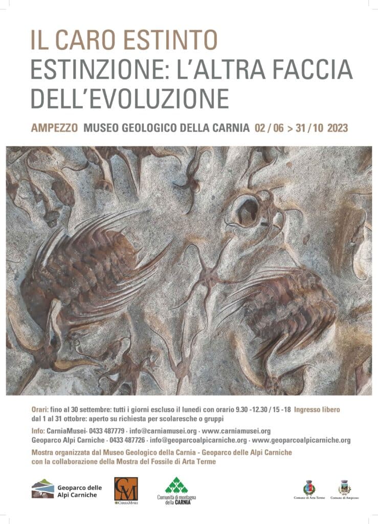 Come ogni estate, l’esposizione permanente del Museo Geologico della Carnia di Ampezzo si arricchisce con una nuova mostra, che in questa occasione ha per tema le estinzioni del passato geologico, per riflettere sui meccanismi e le dinamiche che hanno portato alla scomparsa di specie apparentemente in grado di adattarsi ai cambiamenti, resistenti, perfino evolute. All’identikit rispondono ammoniti, rudiste, trilobiti e grandi mammiferi scomparsi con le glaciazioni quaternarie.