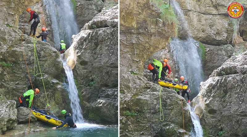 Il Tecnico di centrale del Soccorso Alpino e Speleologico, con il Coordinatore dell’Area operativa Trentino meridionale, ha chiesto l’intervento degli operatori delle Stazioni della Val di Ledro e della Valle del Chiese, che si sono portate sul posto. Nel frattempo anche l’elicottero ha verricellato in forra, a monte dell’infortunato, quattro operatori del Gruppo Tecnico Forre, tra cui vi era anche un sanitario. L’uomo – cosciente ma dolorante – è stato assistito e stabilizzato dall’operatore sanitario del Soccorso Alpino, in coordinamento con il medico della Centrale operativa. Dopodiché, nell’apposita barella per il soccorso in forra, è stato trasportato lungo il canyon dai soccorritori, che hanno dovuto attrezzare due calate, la prima da circa 20 metri e la seconda da 4. Giunti in una zona sufficientemente aperta, è stato fatto intervenire l’elicottero. Il Tecnico di elisoccorso è stato calato con il verricello ed ha recuperato a bordo la barella con l’infortunato. Mentre l’elicottero si è diretto all’ospedale Santa Chiara di Trento, i soccorritori sono usciti dalla forra e sono rientrati autonomamente.