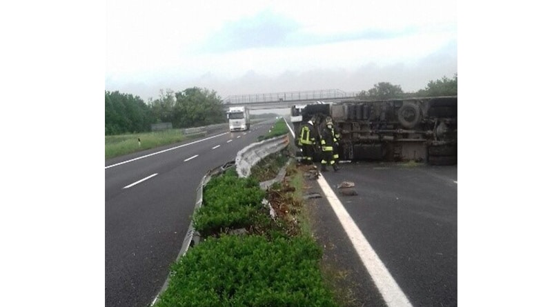 Si ribalta un autoarticolato che trasportava pulcini, chiuso il tratto Palmanova-Udine Sud