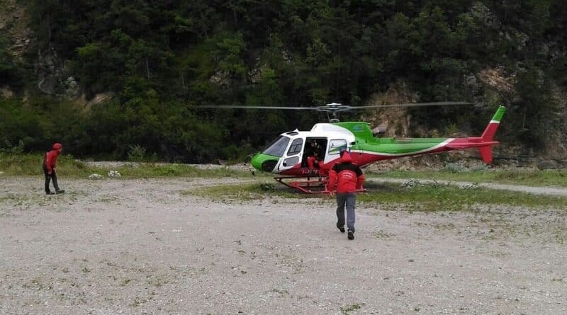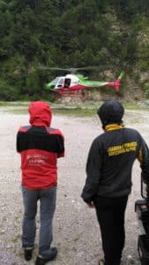 La richiesta è arrivata attraverso il NUE 112, attivato da una cordata di alpinisti, padre e figlio, che stavano tornando dalla scalata di Punta Medace, caratteristico torrione su cui si sviluppa una classica via normale da risalire in cordata. E’ al rientro, scendendo lungo i ripidi ghiaioni che circondano il torrione, che A. G. cinquantaduenne di Tavagnacco, si è procurato una dolorosa storta alla caviglia che gli impediva di proseguire in sicurezza lungo un tratto particolarmente accidentato. E’ così che assieme al figlio, considerando che il tempo stava peggiorando visibilmente, ha allertato i soccorsi. Non trattandosi di infortunio grave, i tecnici del CNSAS hanno chiamato l’elicottero della Protezione Civile con base a Tolmezzo, per non tenere impegnato quello della centrale operativa di Udine. Il velivolo non ha potuto alzarsi subito, perché a Tolmezzo era in corso una violenta grandinata, ma fortunatamente, una volta cessata, e grazie ai venti da nord che tenevano distanti le nuvole dall’area in cui è avvenuto l’infortunio, il recupero ha potuto aver luogo agevolmente in hovering, con l’aiuto dei due tecnici (Guardia di Finanza e Soccorso Alpino) a bordo.