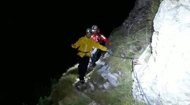Era stato nel frattempo deciso di inviare altri due tecnici in quota per portarle un paio di calzature più adeguate alla discesa in sicurezza. L’itinerario che conduce al Monte Chiampon è notoriamente impervio e insidioso, tantopiù in discesa dove è necessario procedere con cautela. I tecnici CNSAS (undici in totale quelli impegnati nell’intervento, sei in quota, più i soccorritori della Guardia di Finanza in appoggio in base) hanno compiuto circa seicento metri di dislivello con le torce frontali.