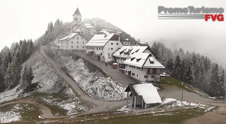 Così come preannunciato dai meteorologi dell’Osmer Arpa, nella notte appena trascorsa deboli precipitazioni sparse hanno “imbiancato” alcune vette dell’Alto Friuli, dalle Alpi Carniche alle Alpi Giulie, con quota neve tra 1200 e 1500 metri circa. Tra queste anche il Lussari, come si può ammirare dalle immagini della webcam di PromoTurismo FVG.