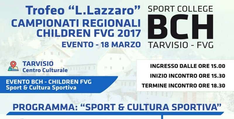 In occasione dei Campionati Regionali Children, in programma fra Sella Nevea e Tarvisio da venerdì 17 a domenica 19 marzo, il Bachmann Sport College (organizzatore della manifestazione, che assegnerà il “Trofeo Luciano Lazzaro”) promuove un convegno sul tema “Sport & Cultura sportiva”, previsto sabato 18 marzo dalle 15 al centro culturale di Tarvisio.