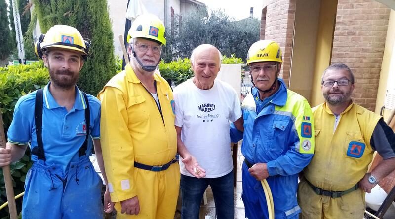 Nel rimuovere il fango, i volontari hanno ritrovato un bracciale d’oro appartenente al marito, un monile di grande valore affettivo, che l’uomo credeva ormai andato perduto. Il bracciale è stato riconsegnato al proprietario (nella foto), che a fatica è riuscito a trovare le parole per dire grazie ai volontari.