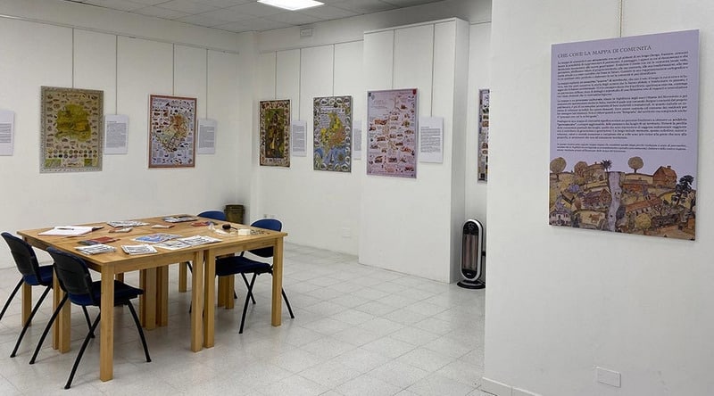 La mappa di comunità nasce come processo culturale partecipato, sviluppatosi in Inghilterra a partire dagli anni Ottanta con le cosiddette parish map (mappe parrocchiali), promosse dall’associazione Common Ground. Il territorio non viene rappresentato secondo scale o criteri oggettivi, ma attraverso una selezione consapevole di ciò che rende un luogo unico agli occhi dei suoi abitanti: paesaggi, edifici, attività, tradizioni, relazioni sociali, nomi e racconti. In Italia questo approccio ha trovato terreno fertile grazie agli ecomusei, che ne hanno fatto uno strumento di coinvolgimento delle comunità e di valorizzazione del patrimonio diffuso. Le mappe di comunità non sono semplici inventari, ma restituiscono anche le relazioni invisibili tra i diversi elementi del territorio e il modo in cui sono percepiti. Per questo motivo non sono mai definitive: sono archivi aperti, capaci di evolvere nel tempo insieme alle persone che li costruiscono.