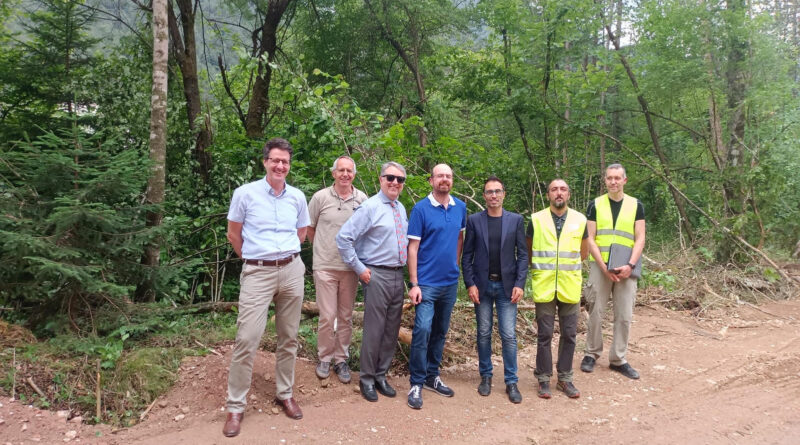 Anna Micelli, sindaco di Resia, con il primo cittadino di Resiutta, Francesco Nesich, a Stefano Mazzolini, insieme ad Augusto Viola, Commissario dell’ ente di decentramento regionale, Marco Domenighini, direttore del servizio viabilità dell’Edr, hanno svolto un sopralluogo congiunto per l’inizio delle opere.
