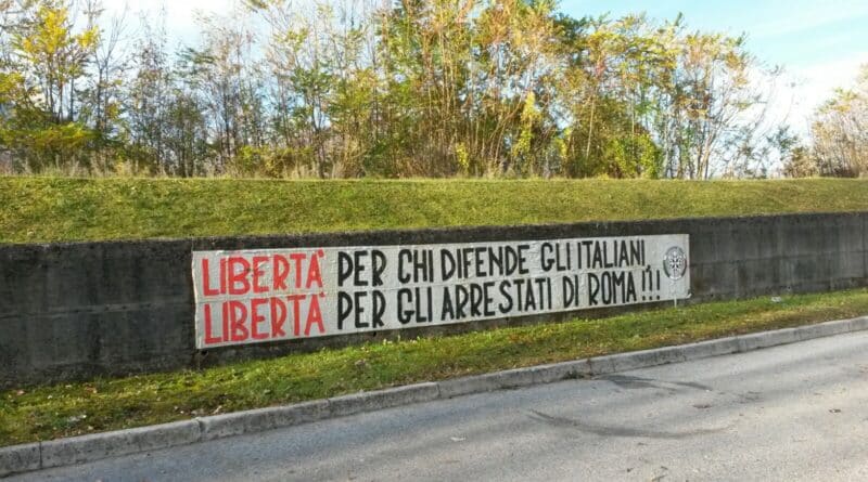 Dopo Pontebba, anche a Tolmezzo compaiono scritte murali di natura politica. Stavolta a farsi notare Casapound che durante la notte ha coperto un muro di contenimento di un area parcheggio di Via Grialba, nella zona sud del capoluogo carnico, con un maxi-striscione nel quale si legge “Libertà per chi difende gli italiani. Libertà per gli arrestati di Roma”.