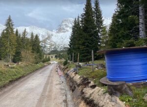 Arriverà sull’altopiano del Montasio l’energia elettrica, 20.000 volt di tensione lungo la traccia interrata a impatto ambientale zero, per circa 5 km lungo la viabilità comunale che sale da Sella Nevea, fino alla cabina di trasformazione in architettura tipica montana, non lontana dall’agriturismo.