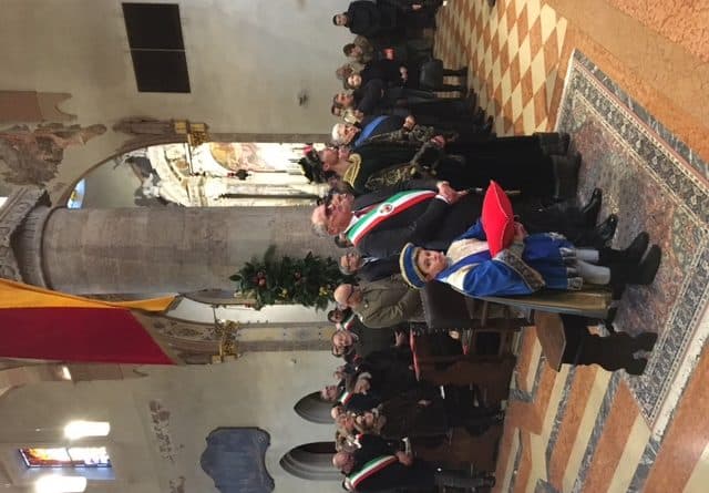 Quindi in corteo, introdotti dai figuranti in costume medioevale, si è giunti fino al Duomo di Santa Maria Assunta per la celebrazione della Santa Messa e la consegna del Tallero d’argento dalle mani del sindaco a quelle del Diacono, come segno di sottomissione del potere temporale a quello spirituale.