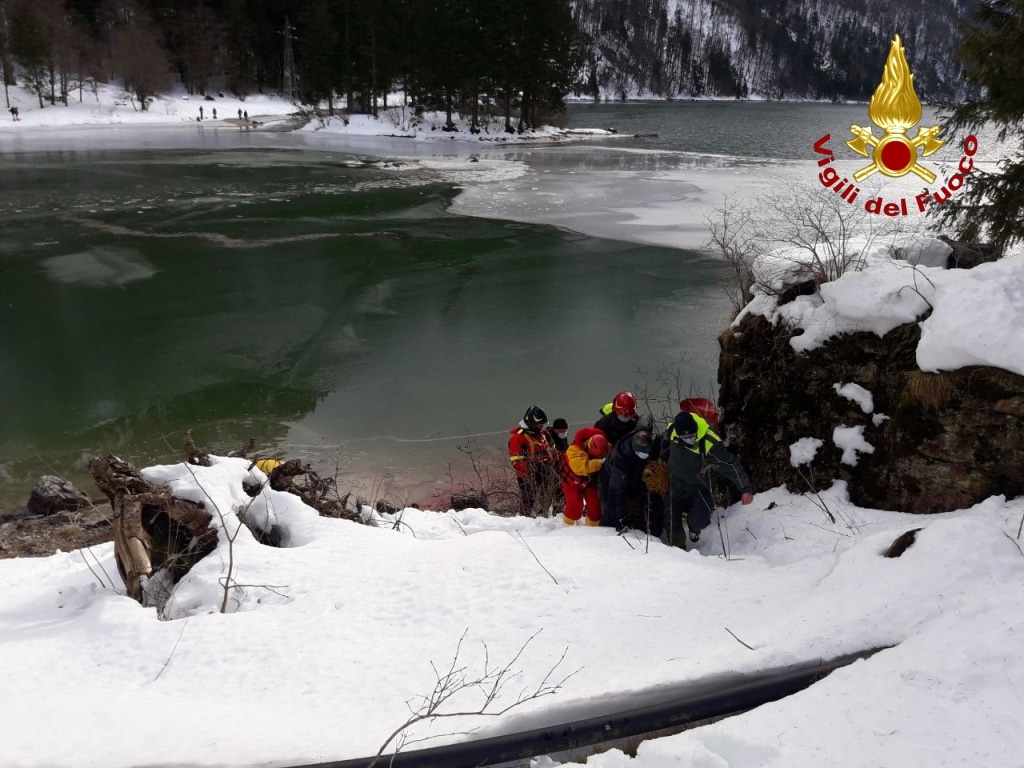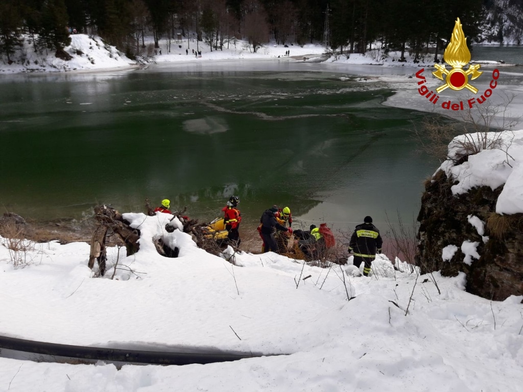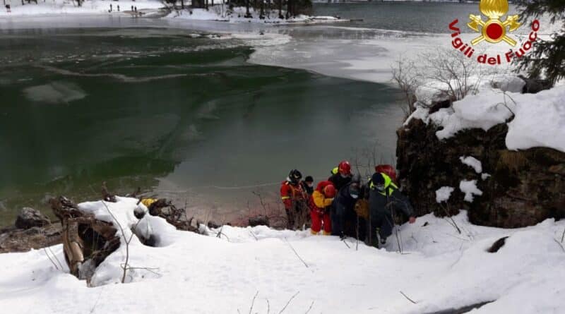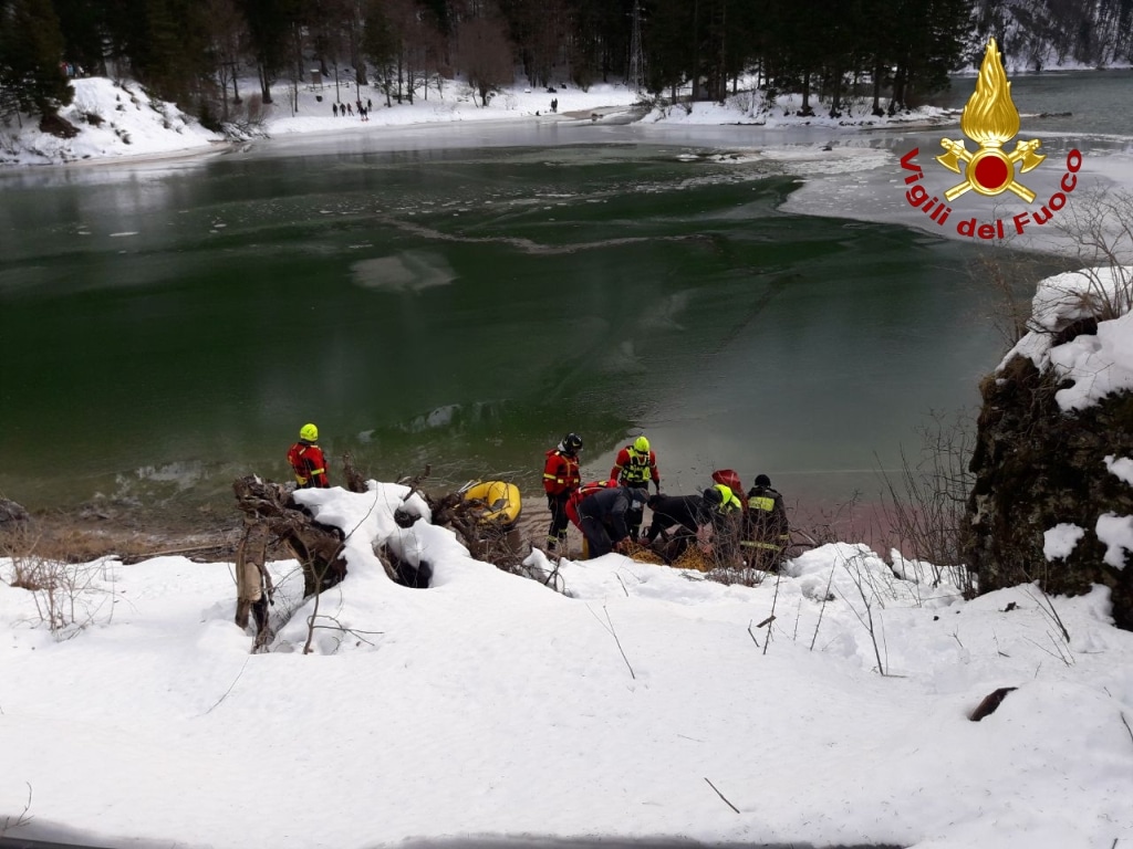 Alle ore 12.00 di oggi, 20 dicembre 2020 la squadra dei Vigili del fuoco del distaccamento di Tarvisio con il supporto del personale SAF della sede centrale di Udine è intervenuta presso il Lago del Predil nel comune di Tarvisio per soccorrere un cervo che era sprofondato nel lago ghiacciato non riuscendo più ad uscirvi.