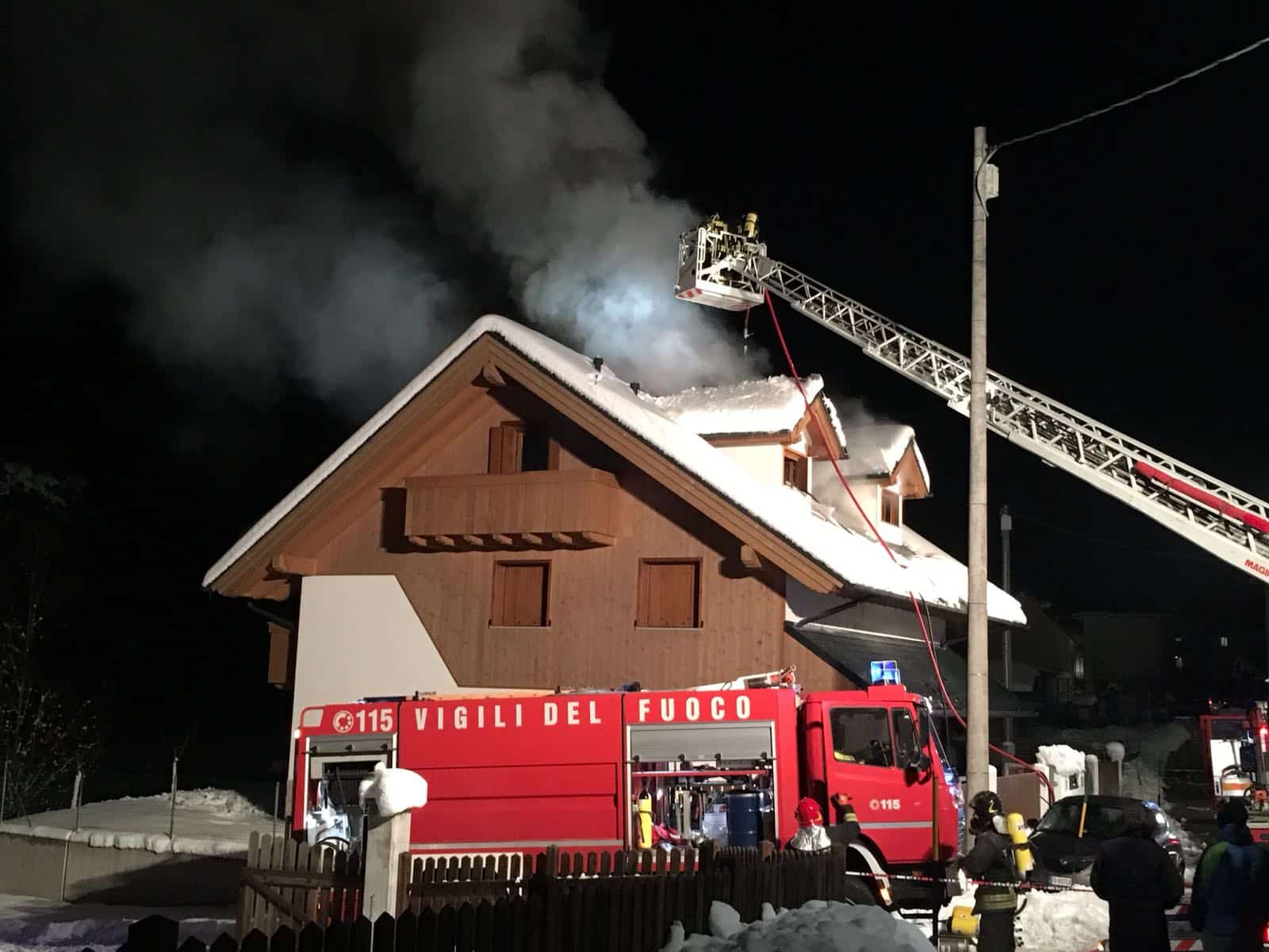 I pompieri, giunti sul posto alle 17.00, sono ancora impegnati delle operazioni di spegnimento anche grazie all’ausilio di una autoscala. Non si conoscono ancora le cause all’origine del rogo ma le ipotesi propendono per un problema alla canna fumaria. Al momento dell’incendio non c’erano persone all’interno dell’edificio.