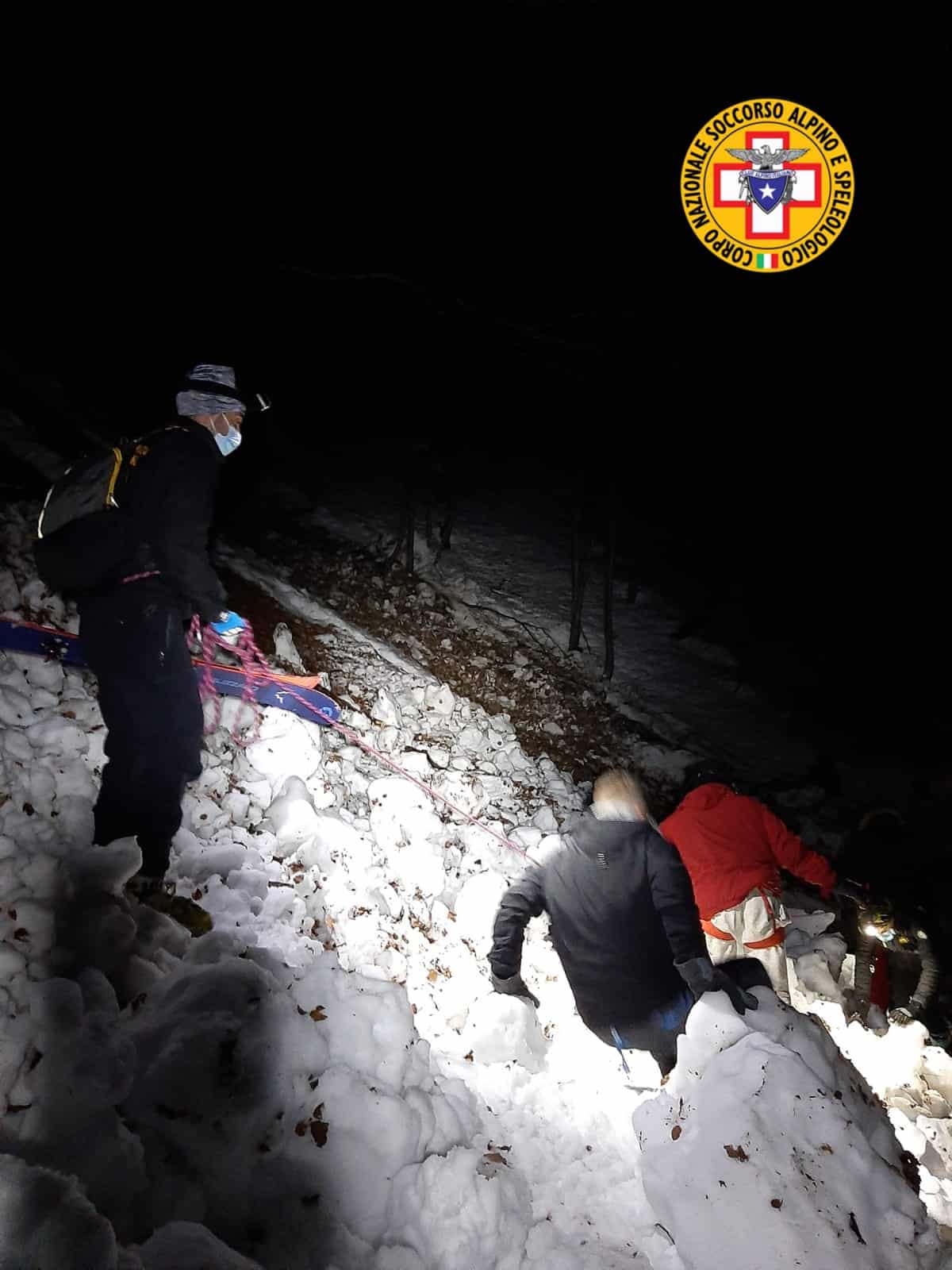 I soccorritori, una squadra mista tra Soccorso Alpino e Guardia di Finanza, hanno risalito la strada con gli sci e superato i punti in cui la strada era ostacolata per raggiungerli, portando loro delle ciaspole per agevolarli nella discesa.