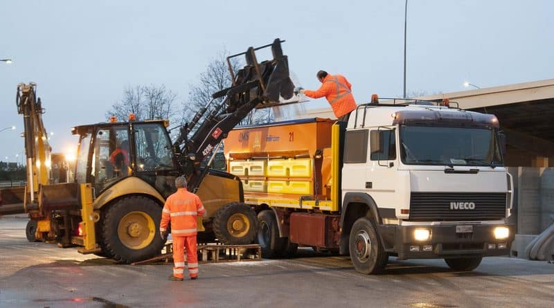 Quando invece le temperature scendono di molto e il ghiaccio si forma più facilmente è necessario intervenire con le botti innaffiatrici: le autobotti, dotate di ugelli innaffiatori, vengono riempite di una soluzione a base di acqua e cloruro di calcio che, una volta spruzzata sull’asfalto, scioglie il ghiaccio.