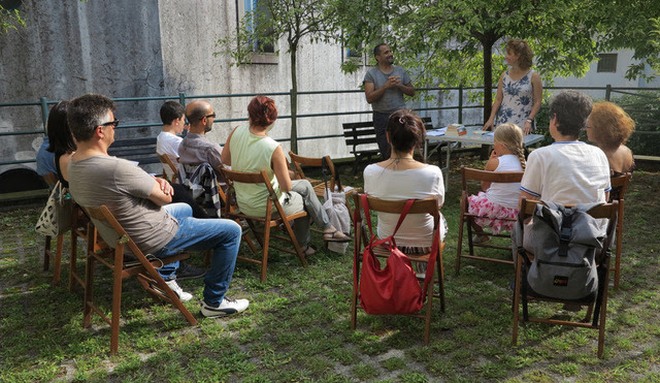 Secondo appuntamento con Teatro in piazza, nell’ambito delle manifestazioni di “E_state in Centro” promosse dall’Ecomuseo delle Acque nel centro storico di Gemona. Si tratta di un laboratorio teatrale suddiviso in più incontri, il prossimo è in programma sabato 28 luglio in piazzetta Celotti situata tra il LAB Terremoto e via S. Giovanni (ritrovo alle 17 al LAB Terremoto in piazza Municipio 5). Il laboratorio si intitola Terre in Moto. Gemona, le città nascoste: concepito all’interno del tessuto urbano e incentrato sul tema del paesaggio, è prodotto dalla compagnia Teatro della Sabbia. Tre le opere a cui gli attori Caterina Comingio e Vincenzo Muriano si sono riferiti: Le città invisibili di Italo Calvino, Luoghi e paesaggi di Andrea Zanzotto, Il paesaggio e il silenzio di Eugenio Turri.