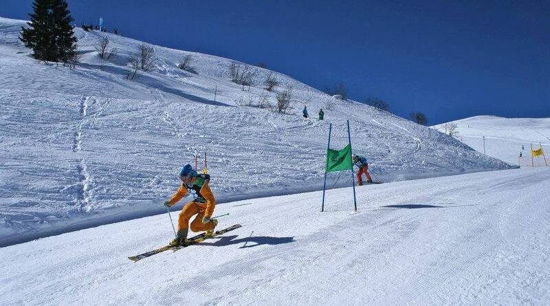 Si tratta di un raduno di Telemark, dove per scendere dai pendii con gli sci si effettuano le curve inginocchiandosi.