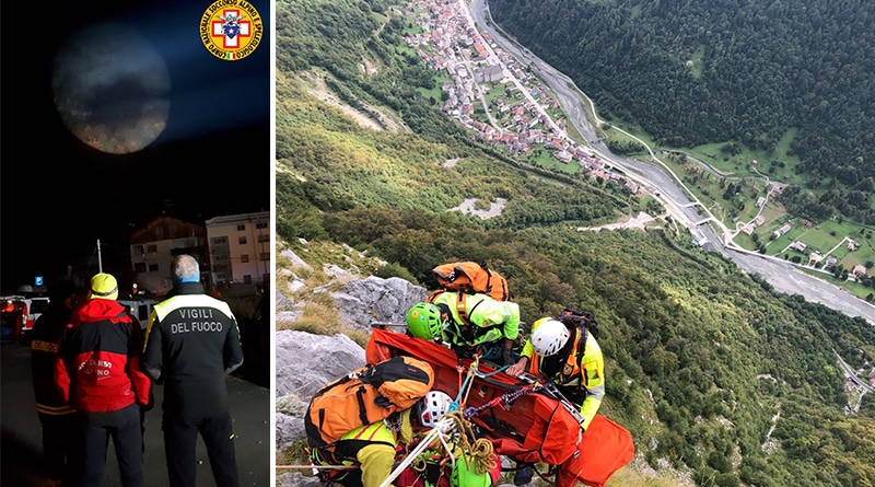 Dopo l’attivazione del NUE112 attraverso il centro internazionale di polizia di Thörl Maglern al quale la cordata si era rivolta in realtà per ottenere qualche informazione su come rientrare nel percorso giusto e non per ricevere soccorso in parete, è stato possibile raggiungerli al telefono e parlare con loro. I due hanno chiarito che cercavano di uscire autonomamente dalla parete e che erano sufficientemente attrezzati per passarvi eventualmente la notte e così è stato: tra l’altro l’uomo si è scoperto far parte del soccorso alpino austriaco. I due sono riusciti a posare nuovamente i piedi alla base della parete poco prima dell’una del mattino, calandosi lungo la stessa. Sul posto i Vigili del Fuoco avevano nel frattempo portato da Pordenone anche una fotoelettrica che avrebbe potuto aiutare a individuare il punto esatto in cui la cordata si trovava qualora si fosse reso necessario raggiungerli in parete. Sul posto Soccorso Alpino, Guardia di Finanza e Vigili del Fuoco.