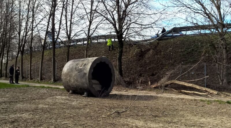 Il blocco d’acciaio cilindrico ha sfondato il guardrail ed è terminato nel giardino di un’abitazione sottostante, fortunatamente senza coinvolgere nessuna persona. Sul posto la Polstrada di Amaro per i rilievi.