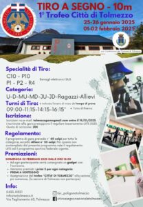 La sezione del Tiro a Segno Nazionale di Tolmezzo organizza il 1° Trofeo Città di Tolmezzo, una manifestazione sportiva a livello nazionale dedicata alle specialità di aria compressa a 10 metri.
