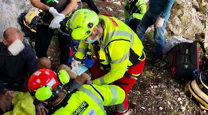 L’uomo stava camminando in salita per raggiungere la falesia quando ha perso aderenza con un piede cadendo per quattro metri d’altezza e poi ruzzolando ripetutamente, riportando diversi traumi.