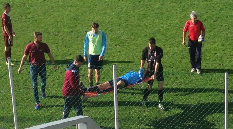 Il trentunenne centrocampista, uno dei campioni italiani Juniores nel 2003, si era infortunato nella fase finale del primo tempo della partita di Cordenons, uscendo dal campo in barella.