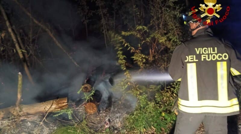 Il pronto intervento dei VV.F. è valso al contenimento delle fiamme prima che si propagassero all’intero bosco.