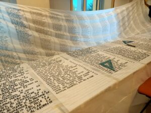 Da sabato 20 settembre un nutrito gruppo di volontari si alterna, nelle stanze dell’ex asilo di Caneva di Tolmezzo, nel lavoro di trascrizione degli oltre diciottomila nomi su una striscia di tessuto lunga più di 23 metri e larga sette metri e mezzo. Accanto ad ogni nome viene riportata l’età che il bambino aveva quando è morto. «È proprio questa la cosa più dolorosa: leggere metri e metri di nomi di bambini morti all’età di un mese o di un anno o di tre, o di cinque… – dice “Carnia per la Pace” -. Metri di nomi di bambini morti bombardati mentre facevano la fila per il pane, seppelliti dalle macerie delle case bersaglio dell’artiglieria, consumati dalla fame. È un lavoro immane che suscita emozioni che hanno bisogno, a momenti, di esplicitarsi, e chiedono un confronto, una riflessione, spesso sfociano in uno sfogo di rabbia che, nelle pause, trovano sponda negli altri, fanno maturare un pensiero, un proposito, un nuovo progetto di lotta contro questo genocidio perpetrato e dichiarato ogni giorno da un esercito e da un governo che hanno perduto anche l’ultima parvenza di umanità. “Carnia per la Pace” vuole mostrare a tutti questo orrore, perché i bambini sono il futuro e il massacro genocida dei bambini di Gaza non può e non deve essere nascosto, né dimenticato», conclude la nota.