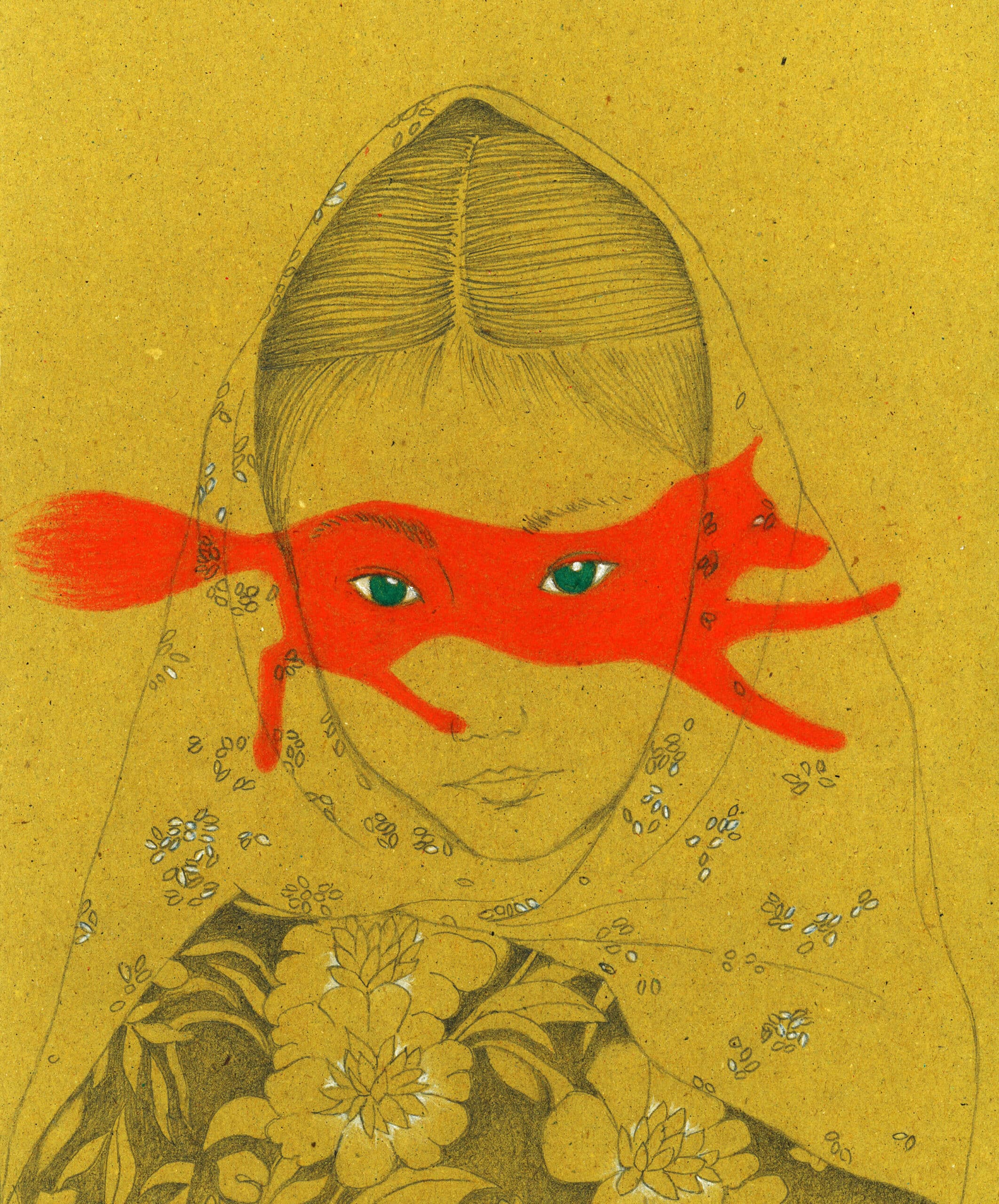 Michela Minen, Kitsune, 2017, grafite e matite colorate su carta paglia