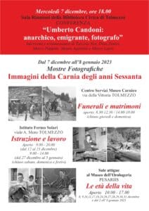Il 5 dicembre del 1972, esattamente cinquanta anni fa, si spegneva a Tolmezzo Umberto Candoni. La sua è stata non solo un’esistenza particolarmente lunga, considerata la vita media di quegli anni, ma anche vissuta con grande intensità, durante la quale ha interpretato vari ruoli: è stato, come tanti carnici, un emigrante; ma è stato anche un anarchico, anticlericale e antimilitarista, che nei primi anni del secolo credeva nell’insurrezione popolare e poi, durante gli anni trascorsi in Francia, si è convertito ad un’idea più pacifista e di fratellanza universale. E’ stato poi, ed è ricordato soprattutto, come un fotografo originale, che ci ha lasciato delle immagini capaci di raccontare un periodo particolare della nostra storia.