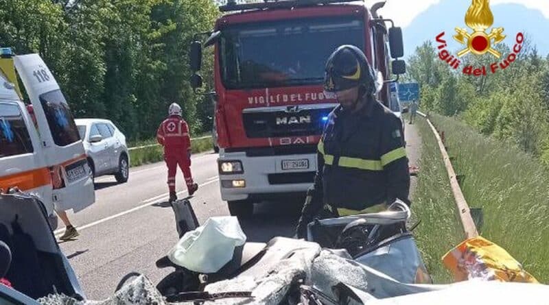 Incidente stradale nella mattinata di giovedì 1 maggio in territorio comunale di Tolmezzo, nel tratto di strada statale 52 “Carnica” che porta in direzione Villa Santina.