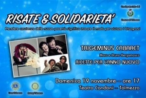 Per il quinto anno consecutivo i club service Lions e Rotary di Tolmezzo, con il patrocinio del Comune e da quest’anno con il supporto dell’Ert e di Carniarmonie, organizzano uno spettacolo solidale a sostegno dei conterranei bisognosi, dei nuovi poveri della Carnia. Per cui l’intero ricavato anche quest’anno sarà convertito in generi alimentari e di prima necessità, consegnati alle famiglie bisognose grazie al supporto dell’Ass. n 3 “Alto Friuli”, della Caritas, della Croce Rossa e dell’Associazione San Vincenzo, da tempo impegnate in operazioni di contrasto a queste difficili problematiche.
