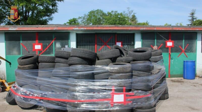 In particolare sono state posti sotto sequestro oltre 1.100 metri cubi di pneumatici fuori uso da smaltire nella maggior parte dei casi incastrati uno dentro l’altro, verosimilmente consistenti in un numero compreso tra le 20.000 e le 25.000 gomme aventi un peso approssimativo compreso tra le 100 e le 120 tonnellate, nonché oltre 200 batterie esauste per veicoli.