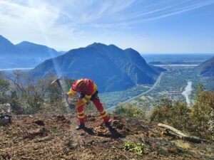 Oggi il personale del Cfr e i volontari della Protezione civile hanno allestito una vasca mobile da 18mila litri per il rifornimento dell’elicottero della PC, che ha effettuato i lanci con acqua additivata e successivamente elitrasportato in quota personale forestale appartenente alla Squadra di intervento in ambiente impervio. Sono state quindi predisposte due piazzole che hanno consentito lo sbarco e posizionamento delle attrezzature specialistiche necessarie per la bonifica capillare del perimetro.