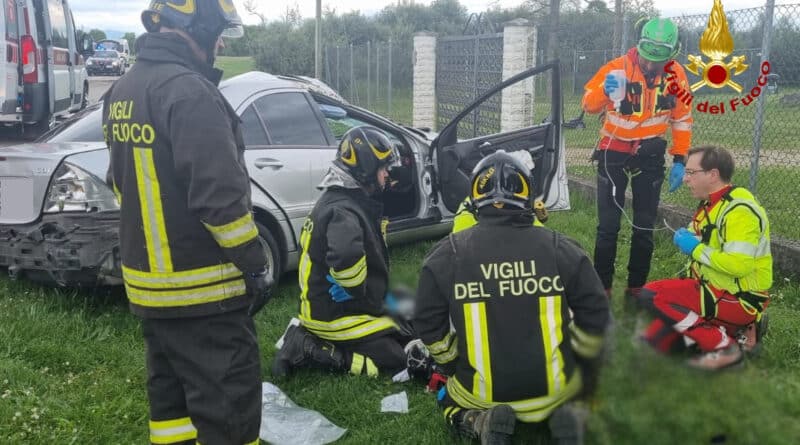 Giunti sul posto i Vigili del fuoco hanno operato in sinergia con il personale sanitario per estrarre dal mezzo incidentato e soccorrere i tre feriti, due uomini e una donna.