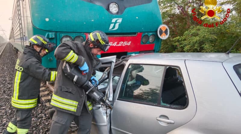 Per cause in corso di accertamento una vettura è stata travolta da un treno, il regionale 17326. Nell’impatto la macchina è stata trascinata per circa 10 metri. L’impatto è stato molto violento.