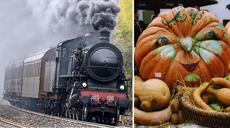 Il treno è collegato alla kermesse della Festa della Zucca che dal 1991 anima ogni anno l’ultimo fine settimana di ottobre il centro storico dell’antico borgo.