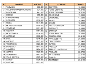 Ecco la cronotabella con gli orari di massima di arrivo della Radiomobile comune per comune.