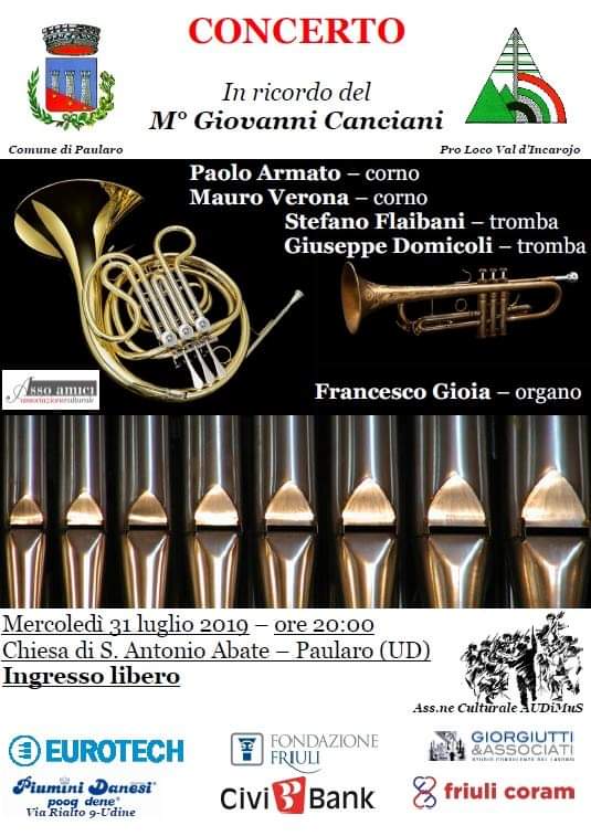 Mercoledì 31 luglio alle 20, nell’oratorio di S. Antonio Abate a Paularo, ci sarà il festival “Ottoni a Nord-Est”, in collaborazione con il Comune di Paularo.