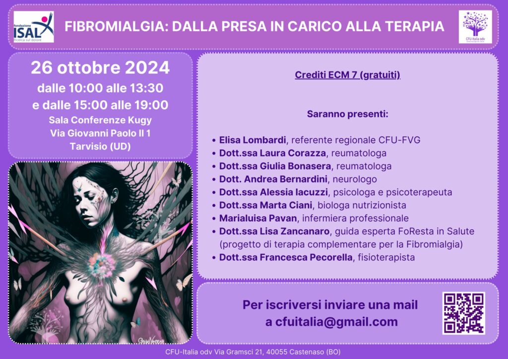 Sabato 26 ottobre nella sala conferenze Kugy di Tarvisio (in via Giovanni Paolo II, 1), si terrà il convegno “Fibromialgia: dalla presa in carico alla terapia”. L’appuntamento è dalle 10 alle 13:30 e dalle 15 alle 19. con entrata dalle 9 per l’accreditamento.