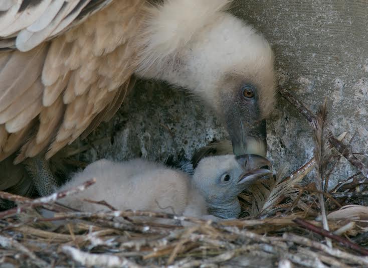Un giovane grifone nato in riserva alla fine di marzo spiccherà il suo primo volo.