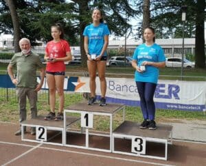 Riguardo alla categoria Cadette, 80 metri piani per Alice Dalla Marta e Sara Benzoni rispettivamente in 11″06 e 12″08 e 1000 metri per Giada Gonano, terza in 3’29″53.