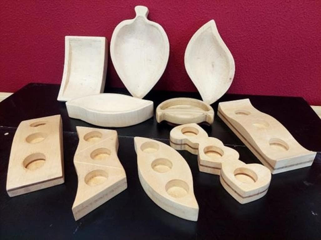 Durante la seconda settimana, l’attenzione si è concentrata sull’intaglio del legno. Inizialmente, ai ragazzi è stato proposto di realizzare una ciotola scolpita in legno massello di tiglio o di cirmolo, in modo che hanno iniziato ad usare correttamente le sgorbie e hanno acquisito i fondamenti di questa tecnica artigianale. Una volta verificate le competenze acquisite nella prima fase, ai partecipanti è stato chiesto di progettare e intagliare un secondo oggetto: un portacandele con inserto decorativo in noce americano, mogano e ciliegio, anch’esso realizzato in tiglio o cirmolo, con forma e dimensioni personalizzate.